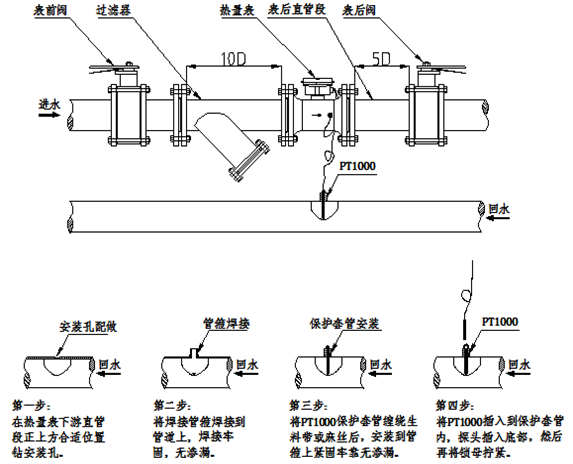 - 顯示功能:顯示累積流量、累積熱量、累積冷量、瞬時流速、進回水溫度、溫差、上電時間、報警時間、運行時間等;