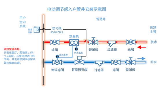 - 室溫調節:與無線溫控面板配套使用,通過設定溫度控制開關閥,調節室內溫度。
