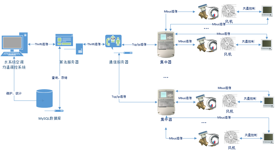 該系統(tǒng)是一款以水系統(tǒng)空調(diào)系統(tǒng)項(xiàng)目中的智能監(jiān)測調(diào)控系統(tǒng),監(jiān)控空調(diào)運(yùn)行參數(shù)為手段,以空調(diào)節(jié)能運(yùn)行管理為目的的Web化系統(tǒng),通過在線監(jiān)測空調(diào)運(yùn)轉(zhuǎn)模式、供回水溫度、室內(nèi)溫度、設(shè)定溫度、電量等運(yùn)能參數(shù),并進(jìn)行周期采集,進(jìn)而對數(shù)據(jù)進(jìn)行統(tǒng)計(jì)、分析,考慮到供暖、制冷過程中房屋日照朝向及風(fēng)盤遠(yuǎn)近程度主要因素,在此基礎(chǔ)上建立一套相應(yīng)的空調(diào)節(jié)能管理模型,通過配以集中控制、水力平衡、預(yù)先調(diào)控、分時控制、分區(qū)控制等全方位調(diào)控手段,最終達(dá)到在線空調(diào)的節(jié)能運(yùn)行管理,通過調(diào)控實(shí)現(xiàn)建筑空調(diào)用電節(jié)能10%~15%以上。